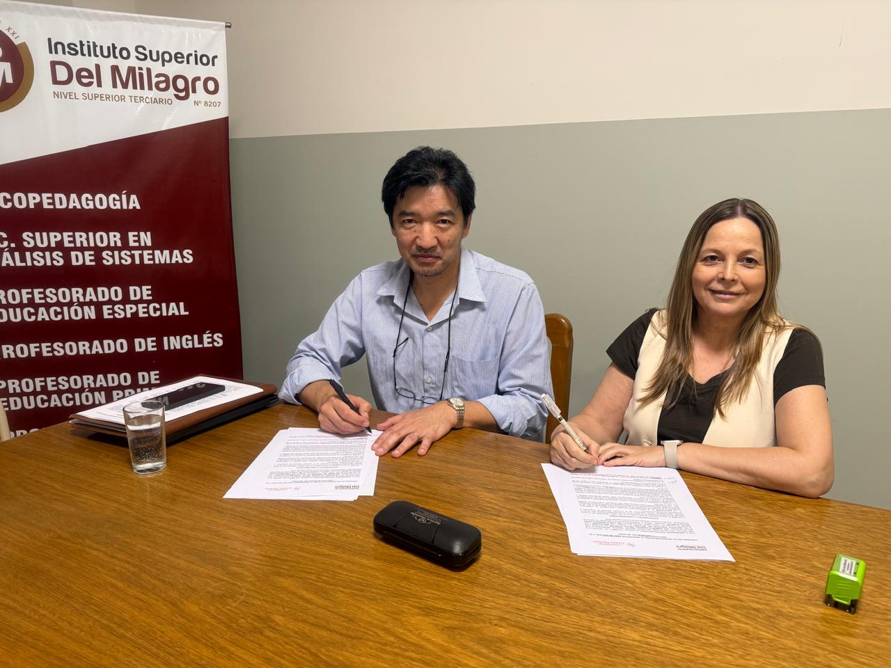 El miércoles 26 de noviembre, en la ciudad de Salta, la Universidad Gastón Dachary (UGD) y el Instituto Superior del Milagro (ISDeM) formalizaron un convenio de colaboración académica que permitirá que egresados de esta institución salteña continúen sus estudios universitarios en modalidad a distancia a través de la UGD. La firma estuvo a cargo del vicerrector de la UGD, Ing. Roberto Suenaga, y de la apoderada del ISDeM, Carla Verónica Arias.